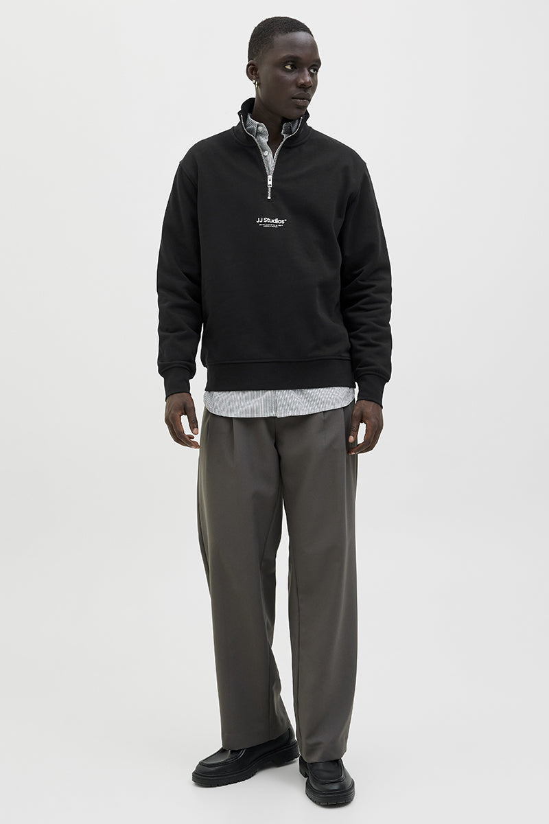 - Das Sweatshirt hat einen hohen Kragen mit Reißverschluss sowie Rippbündchen an Ärmeln und Saum