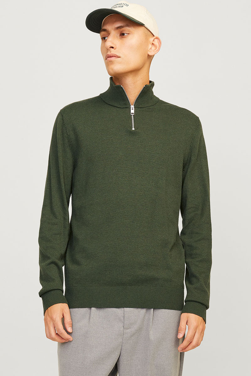 JJEEMIL KNIT HALF ZIP NOOS Dark Grey Melange