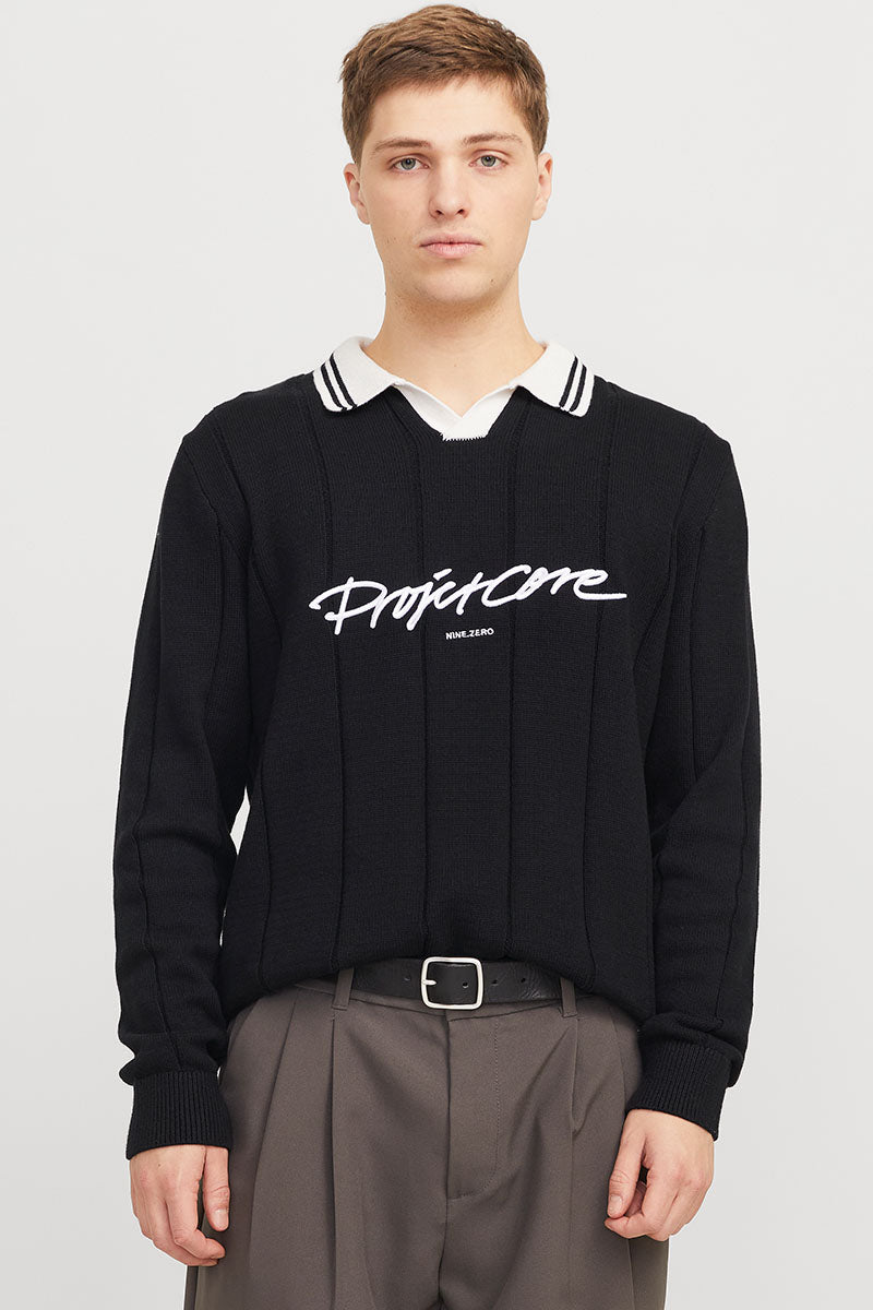 JJEEMIL KNIT HALF ZIP NOOS Black