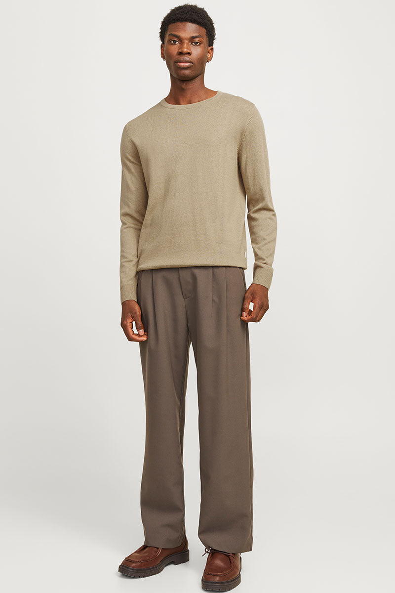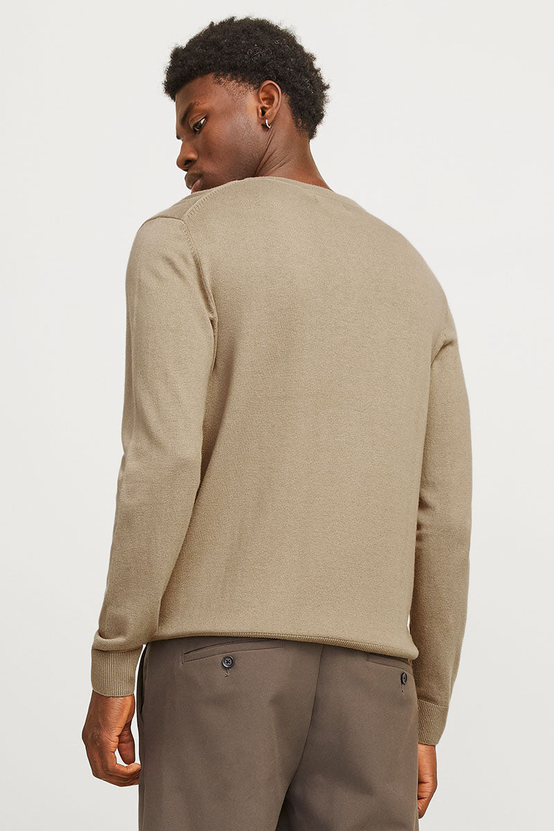 - Beiger Strickpullover mit langen Ärmeln in Knit Fit.