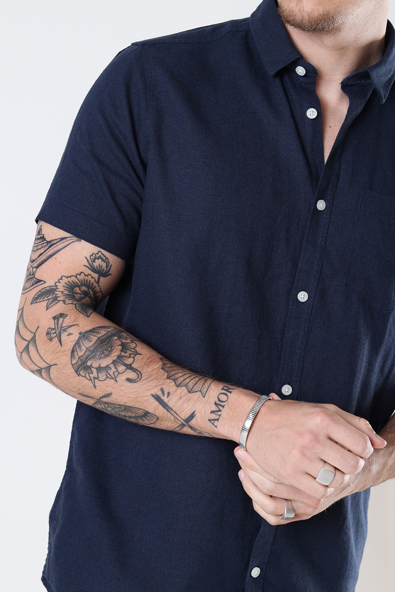 Allan SS Linen Hemd Insignia Blue