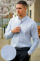 Oxford Stretch Stripe L/S Navy Striped