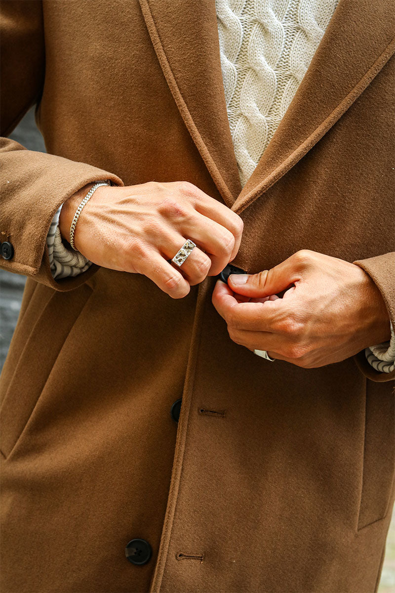 - Kommt in einem schweren Stoff aus Wollmischung.