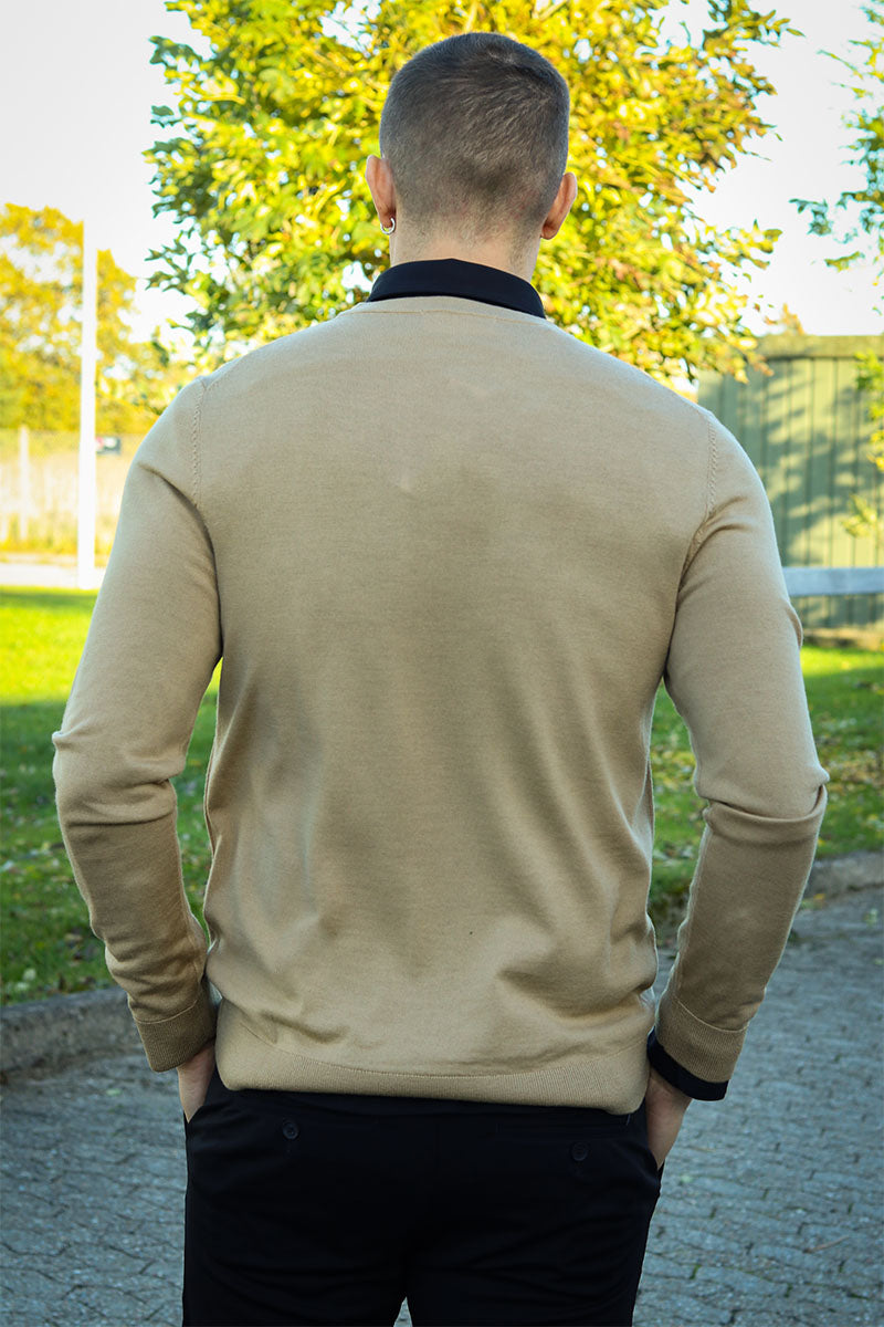 • Mit gerippten Bündchen an den Ärmeln und am Kragen.