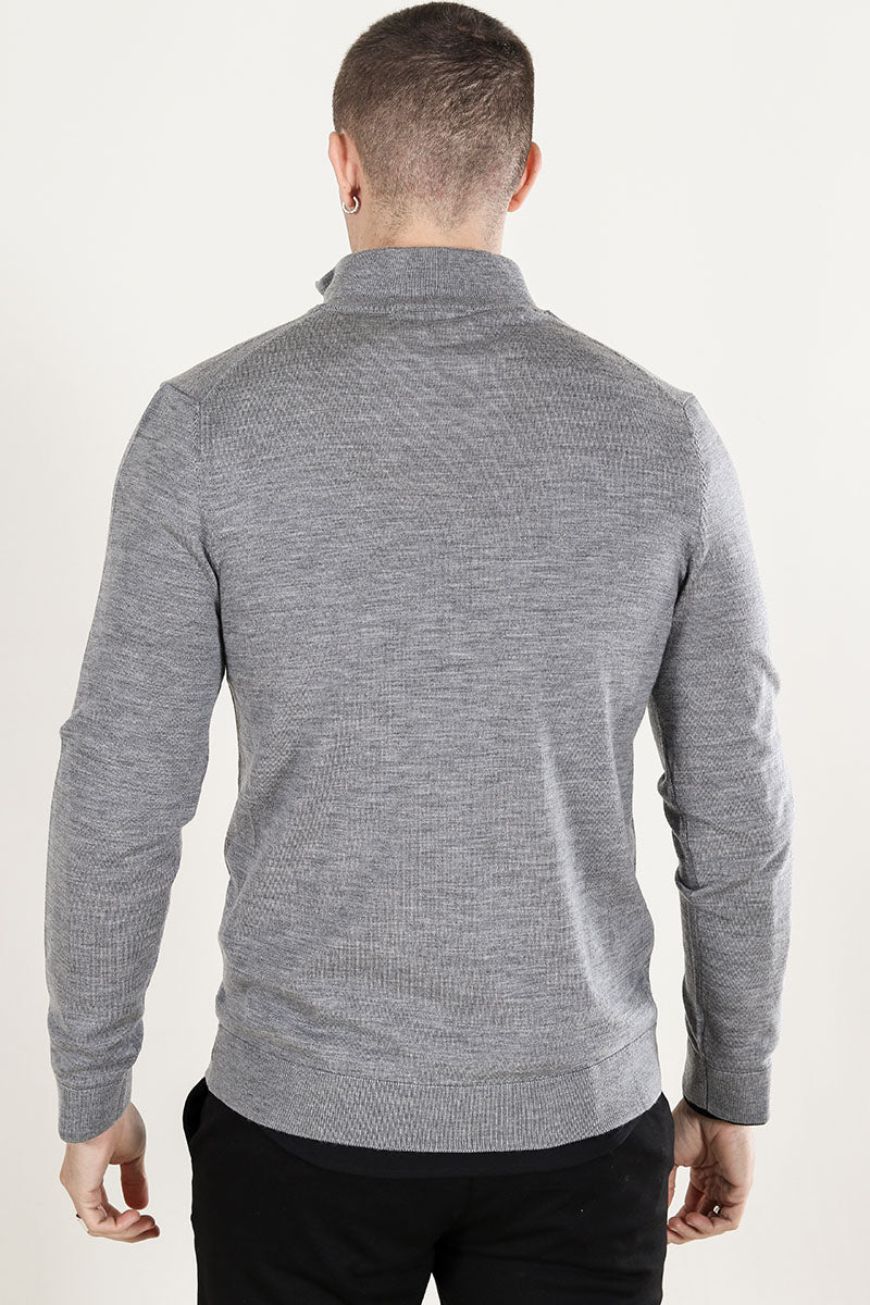 Tray LS Merino Knit Half Zip Medium Grey Melange