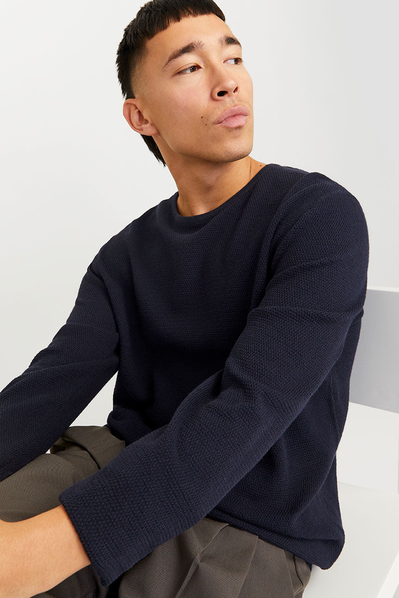 - Dunkelblauer Strickpullover mit langen Ärmeln im Relaxed Fit