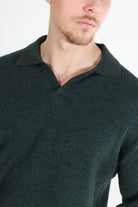 • Unifarbener Strickpullover mit geteiltem Kragen.