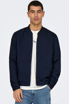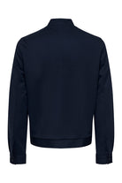 - Dunkelblaue Bomberjacke mit Reißverschluss.