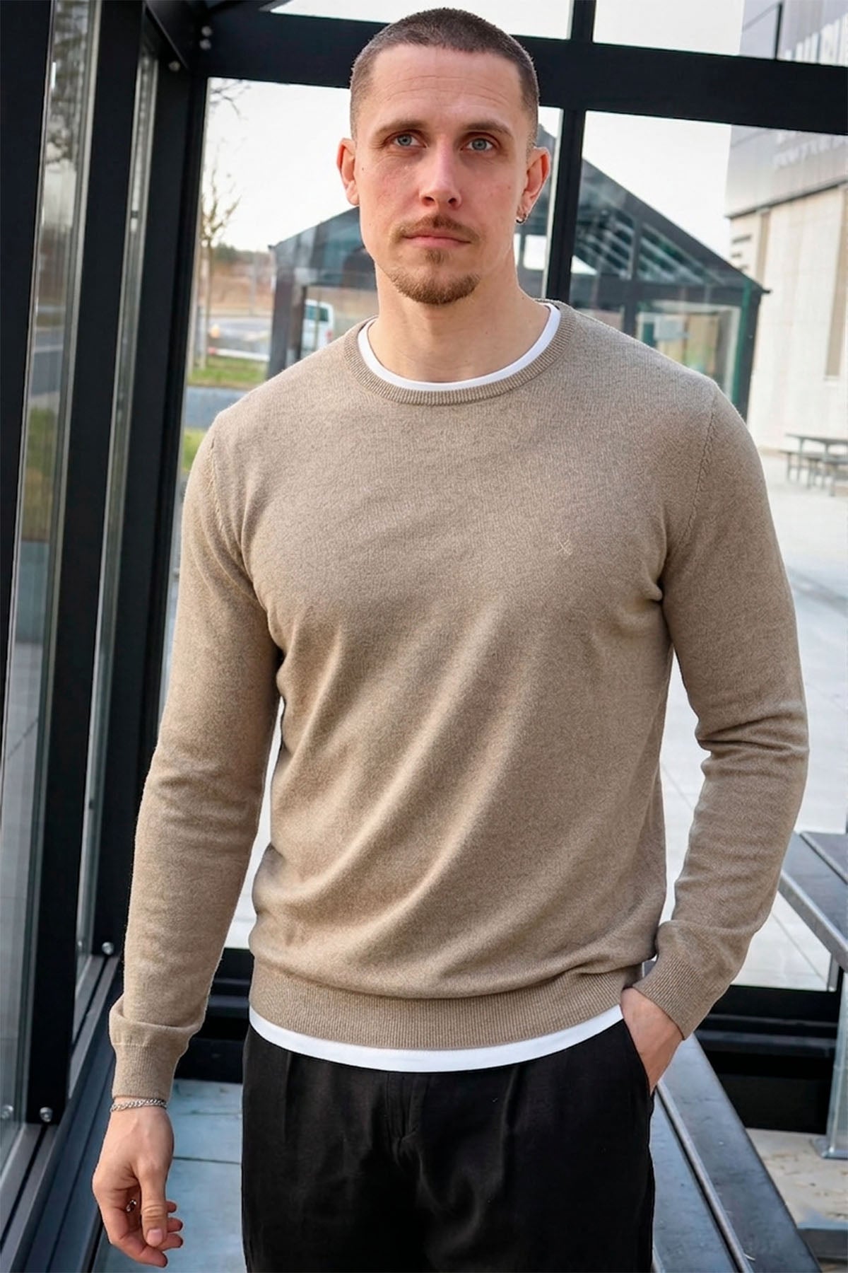 Claude crewneck knit Dark beige melange