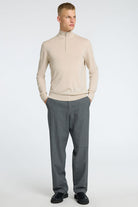 - Beigefarbener langärmeliger Strickpullover in regulärer Passform