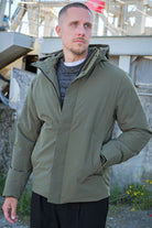 - Mit 2 schrägen Vordertaschen und wasserabweisend.