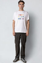 - Das T‑Shirt hat einen Rundhalsausschnitt und eine normale Passform