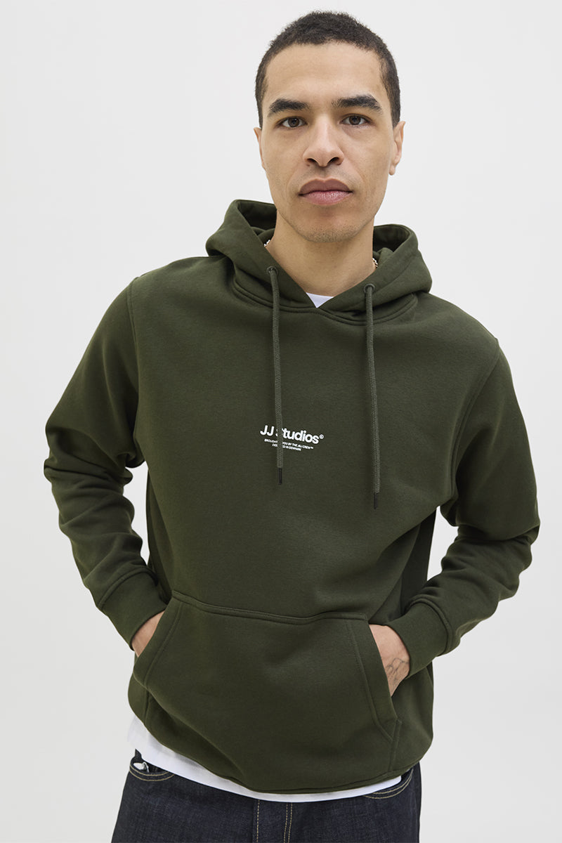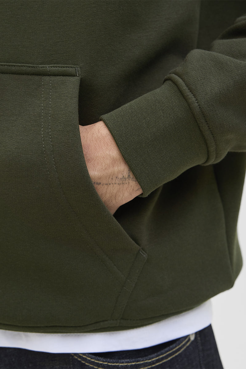 - Die Hoodie verfügt über eine Kängurutasche und Rippbündchen an Ärmeln und Saum