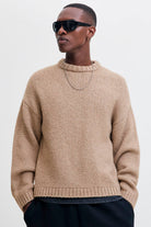 - Der Pullover hat einen Rundhalsausschnitt, lange Ärmel und eine grobe Struktur. Außerdem mit Rippbündchen an Ärmeln und Saum.