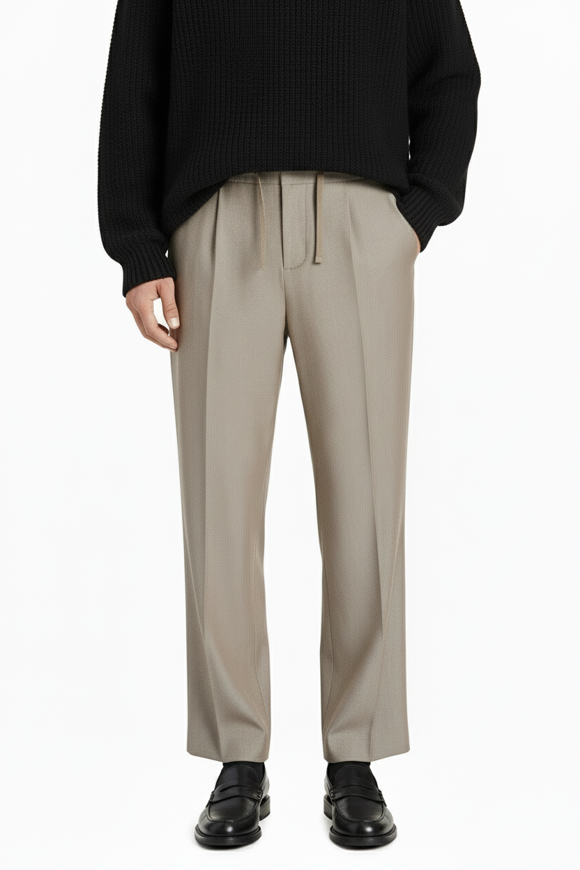 - Hosen mit Kordel im Bund sowie Haken‑und‑Ösenverschluss und Reißverschluss