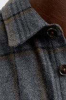 • Dunkelgraues kariertes Overshirt mit langen Ärmeln