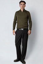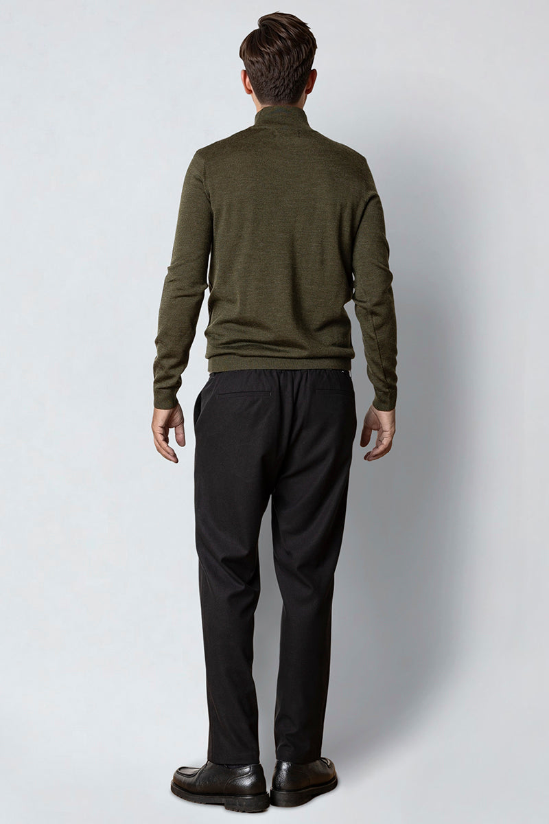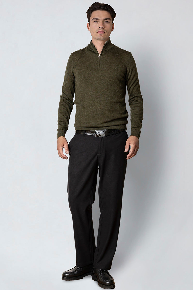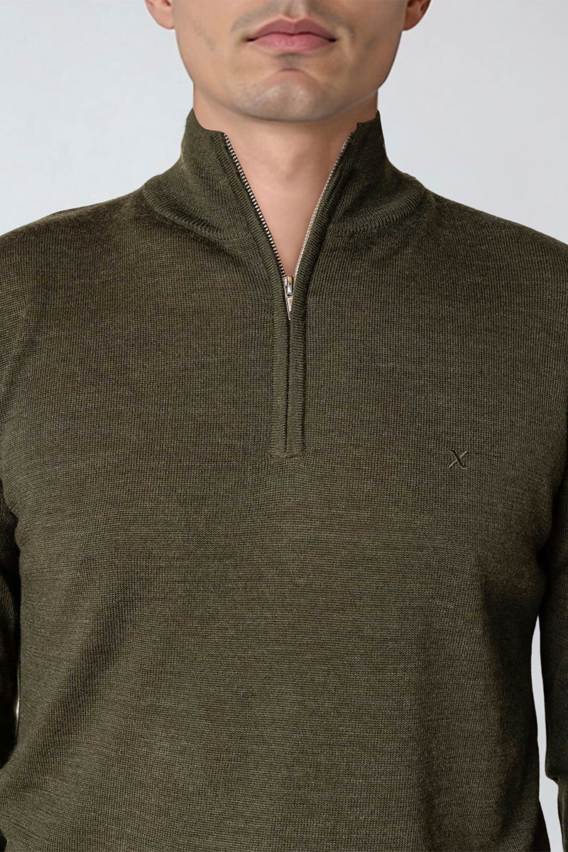 Merino Half Zip Army Melange