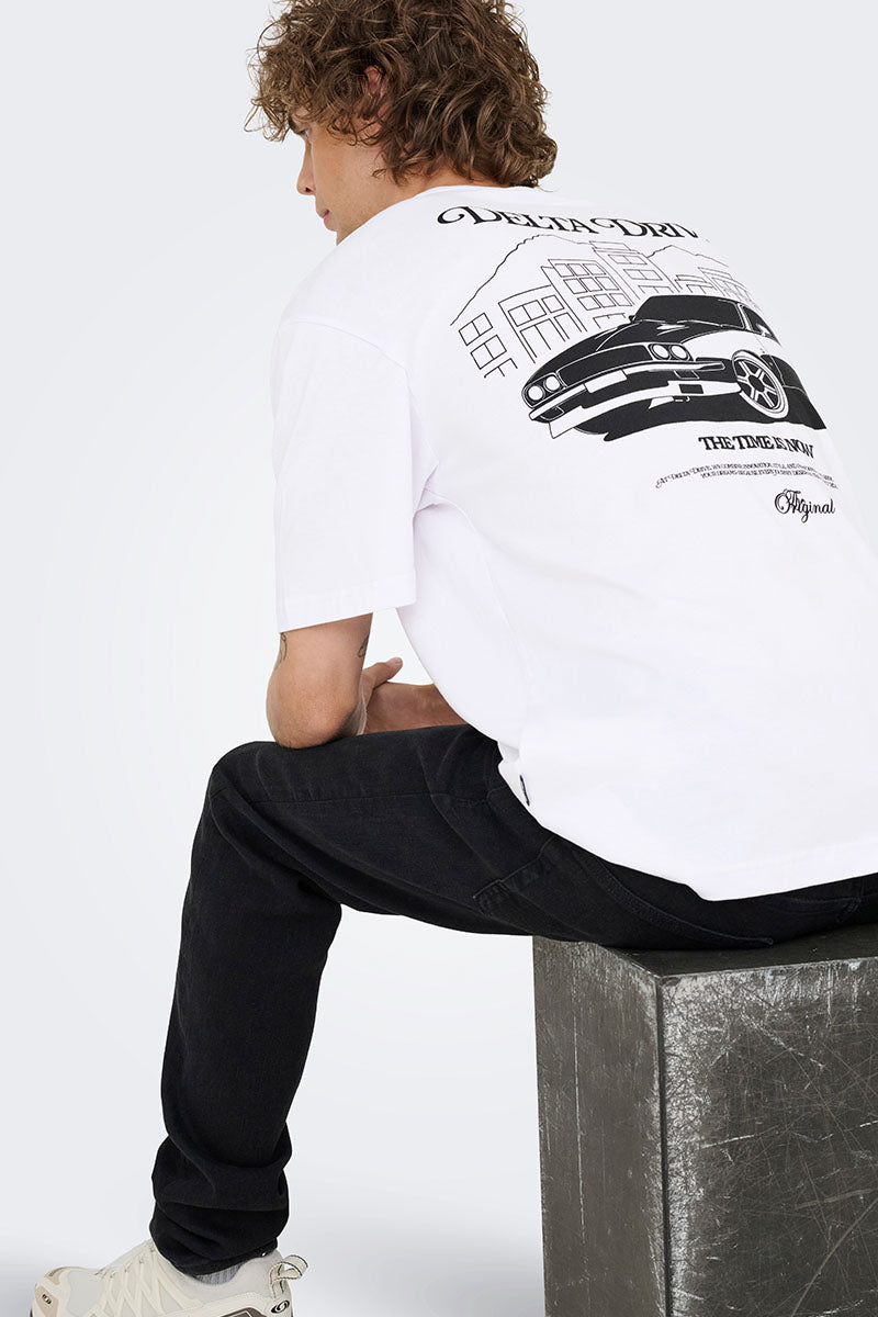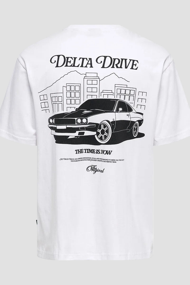 Nathan Backprint Relaxed Fit Tee Bright White Delta Drive