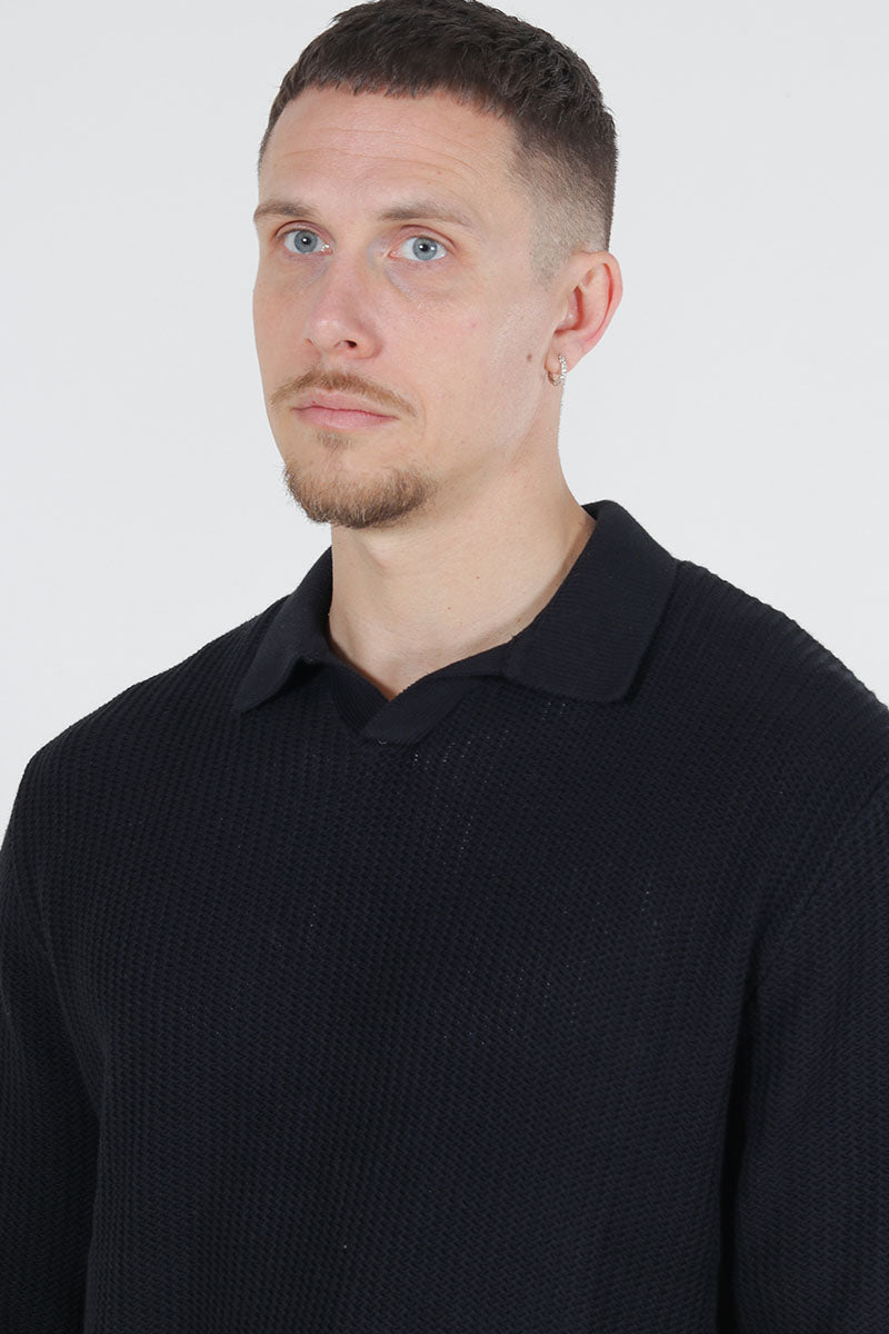 - Mit Polokragen sowie Rippbündchen an Ärmeln und Saum