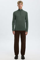 - Weicher Strickpullover mit hohem Kragen, Half‑Zip und langen Ärmeln