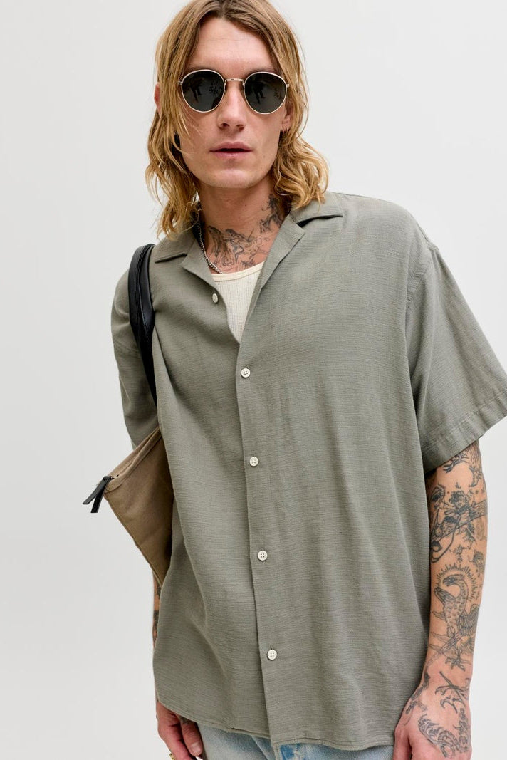 Dieses Resort-Hemd besticht durch seinen entspannten Schnitt und kurze Ärmel, die für einen lässigen und dennoch stilvollen Sommerlook sorgen. Der Resortkragen verleiht dem Hemd eine besondere Note, während der gewebte Stoff für Strapazierfähigkeit sorgt, ohne sich wie gestrickte Stoffe zu dehnen. Die Kombination aus 50 % Bio-Baumwolle und 50 % Baumwolle macht das Hemd zu einer nachhaltigen und angenehmen Wahl für die warmen Monate.