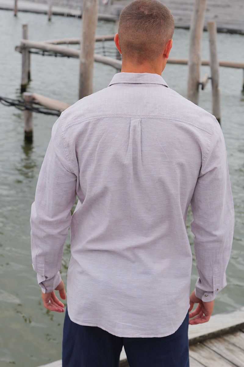 Dieses langärmelige Hemd aus einer leichten und atmungsaktiven Leinenmischung bietet eine natürliche, luftige Textur, die für hohen Tragekomfort sorgt. Der klassische Hemdkragen und die geknöpften Manschetten unterstreichen den traditionellen Stil, während der reguläre Schnitt eine angenehme Passform garantiert. Ideal für stilvolle Sommeroutfits, verbindet das Modell schicke Details mit nachhaltigen Materialien.