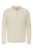 - Beiger langärmliger Polo‑Strick in Regular Fit
