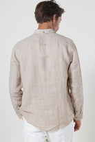 • Beiges langärmeliges Leinenhemd in regulärer Passform.