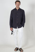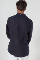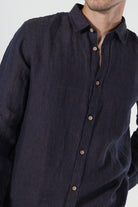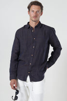 • Braunes langärmeliges Leinenhemd in regulärer Passform.