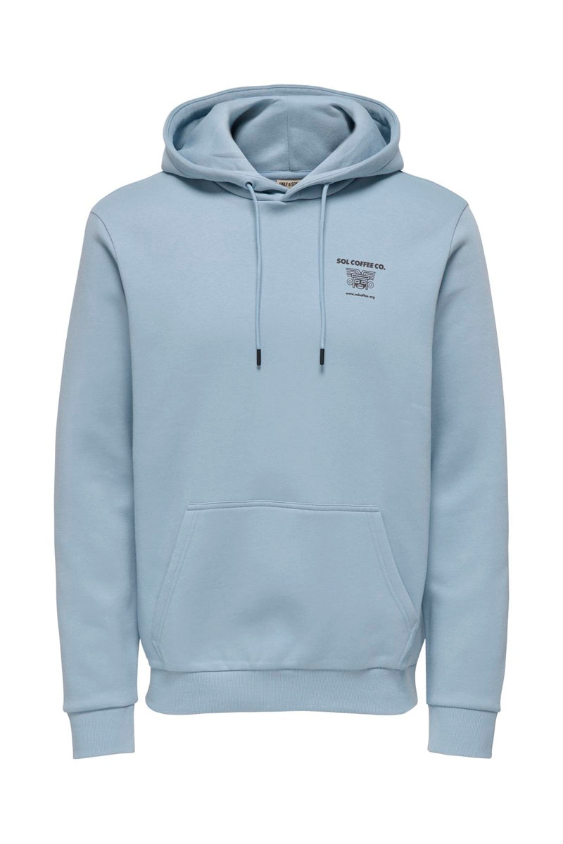 Der Food Fiesta Reg Hoodie ist ein lässiger Pullover mit einem klassischen Rundhalsausschnitt und langen Ärmeln. Er bietet mit seinem Regular Fit eine bequeme Passform, die sich perfekt für den Alltag eignet. Der Hoodie besticht durch einen auffälligen Print, der sowohl vorne als auch auf der Rückseite zu sehen ist. Für praktischen Nutzen sorgt die Kängurutasche vorne, während der Kordelverschluss am Hals zusätzliche Akzente setzt. Das Material ist eine Mischung aus 65 % Baumwolle und 35 % recyceltem Polyester, was für ein weiches und atmungsaktives Tragegefühl sorgt.