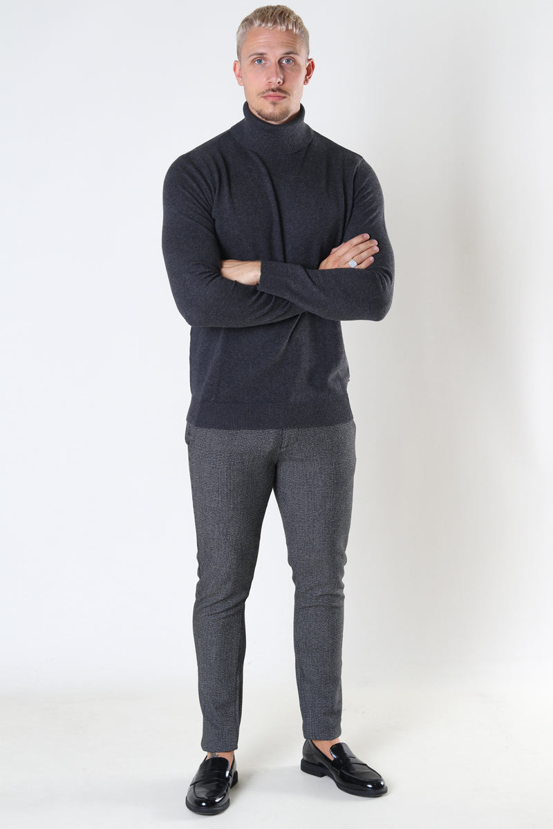 EMIL KNIT ROLL NECK Dark Grey Melange