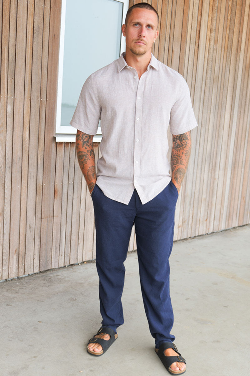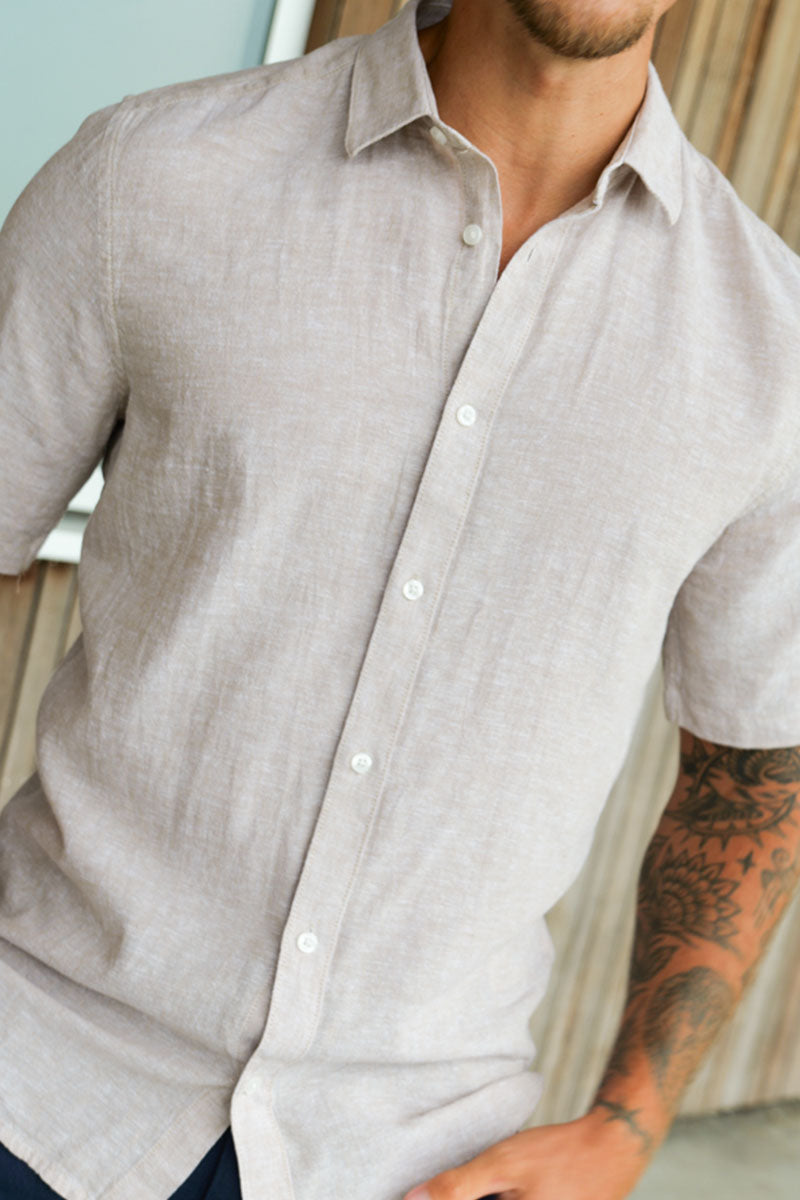 Caiden SS Linen Hemd Chinchilla