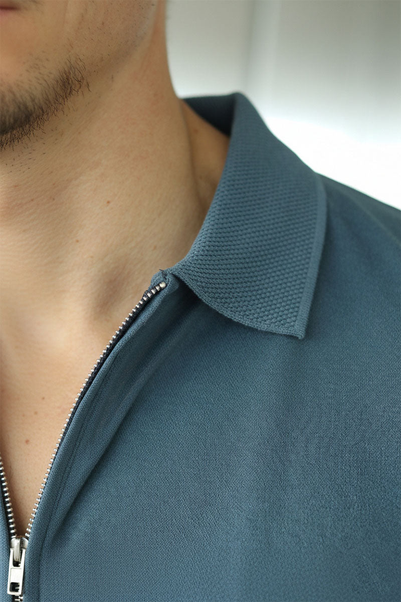 Fave Zip Ss Polo Blue Mirage