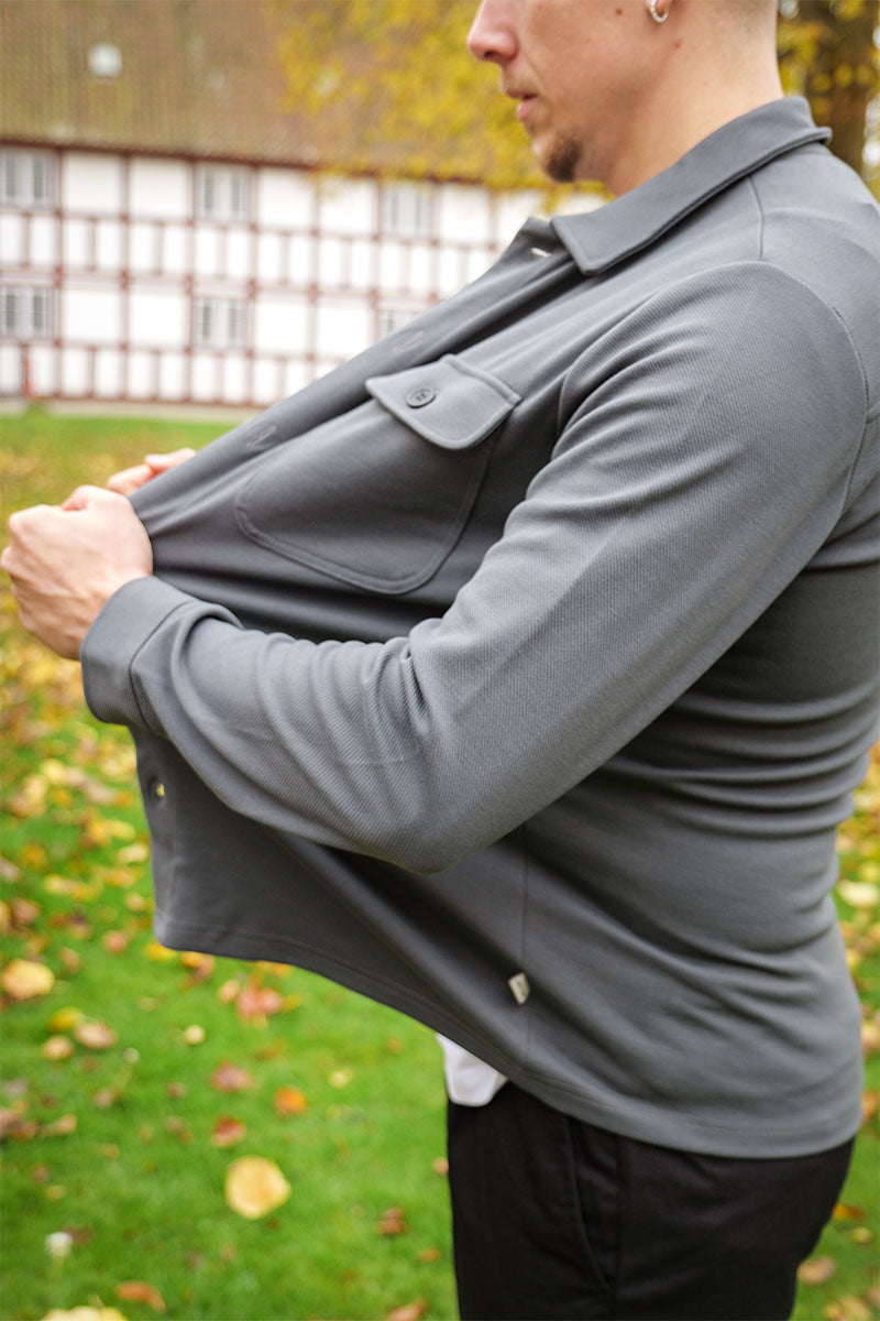 Dieses Overshirt besticht durch sein zeitloses Design mit einem klassischen Hemdkragen und langen Ärmeln. Die reguläre Passform sorgt für einen bequemen Sitz, der sich ideal für den Alltag, den Beruf oder besondere Anlässe eignet. Geschlossen wird das Hemd mit Knöpfen, wobei auch die Brusttaschen mit Knopfverschlüssen ausgestattet sind, was dem Overshirt eine praktische Note verleiht. Der dezente "Grey Pinstripe"-Ton rundet den Look stilvoll ab.