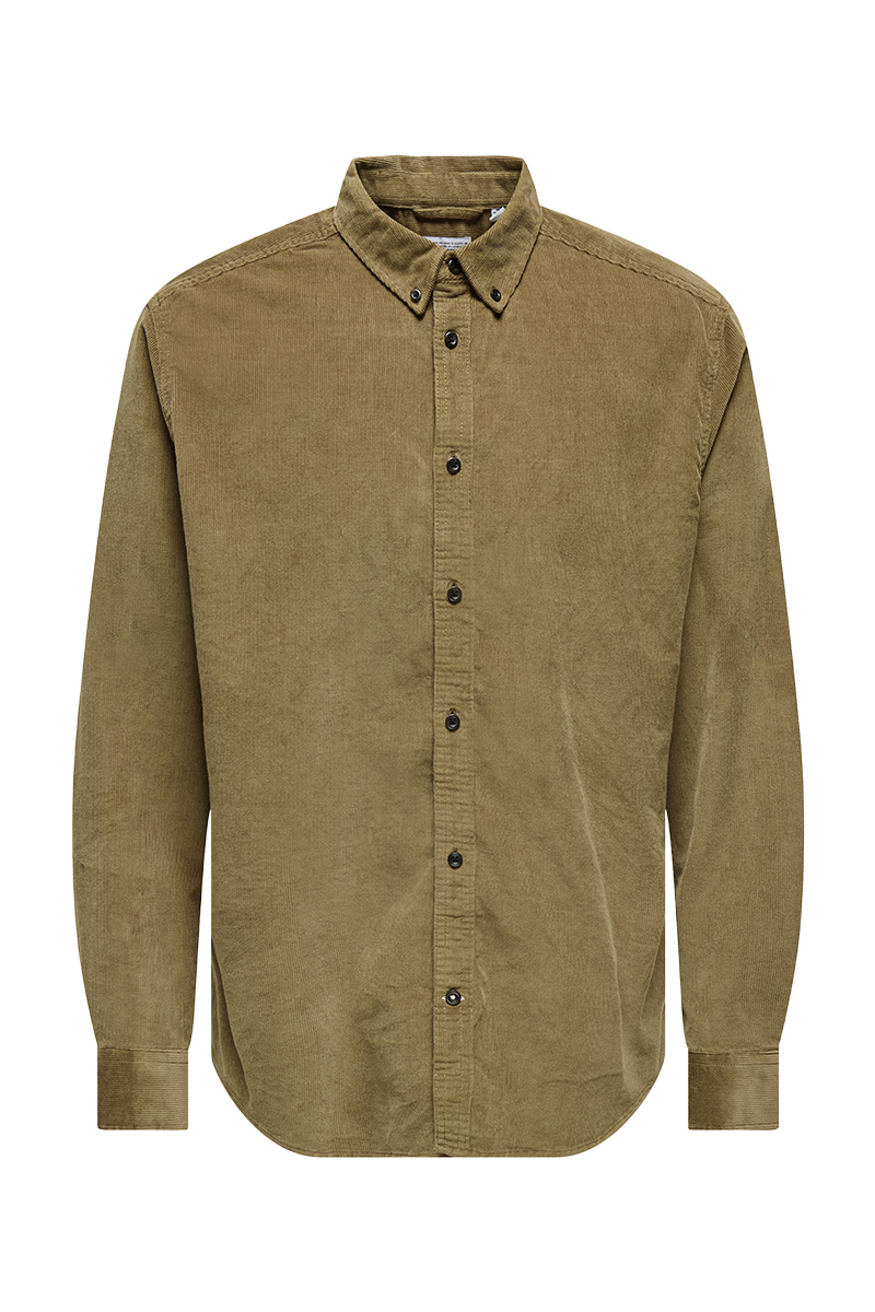 Only & Sons Michael Regular Fit Stretch Cord Shirt LS Otter