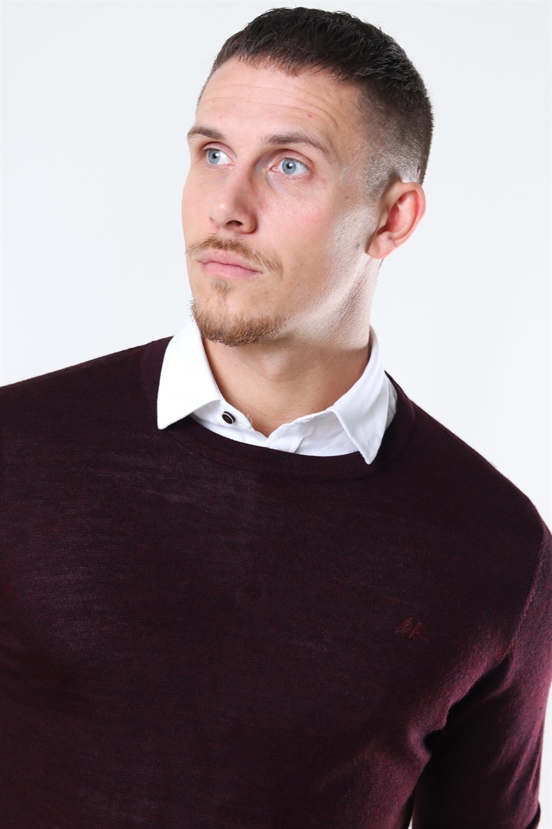 Lindbergh Merino O-Neck Stricken Dark Bordeaux