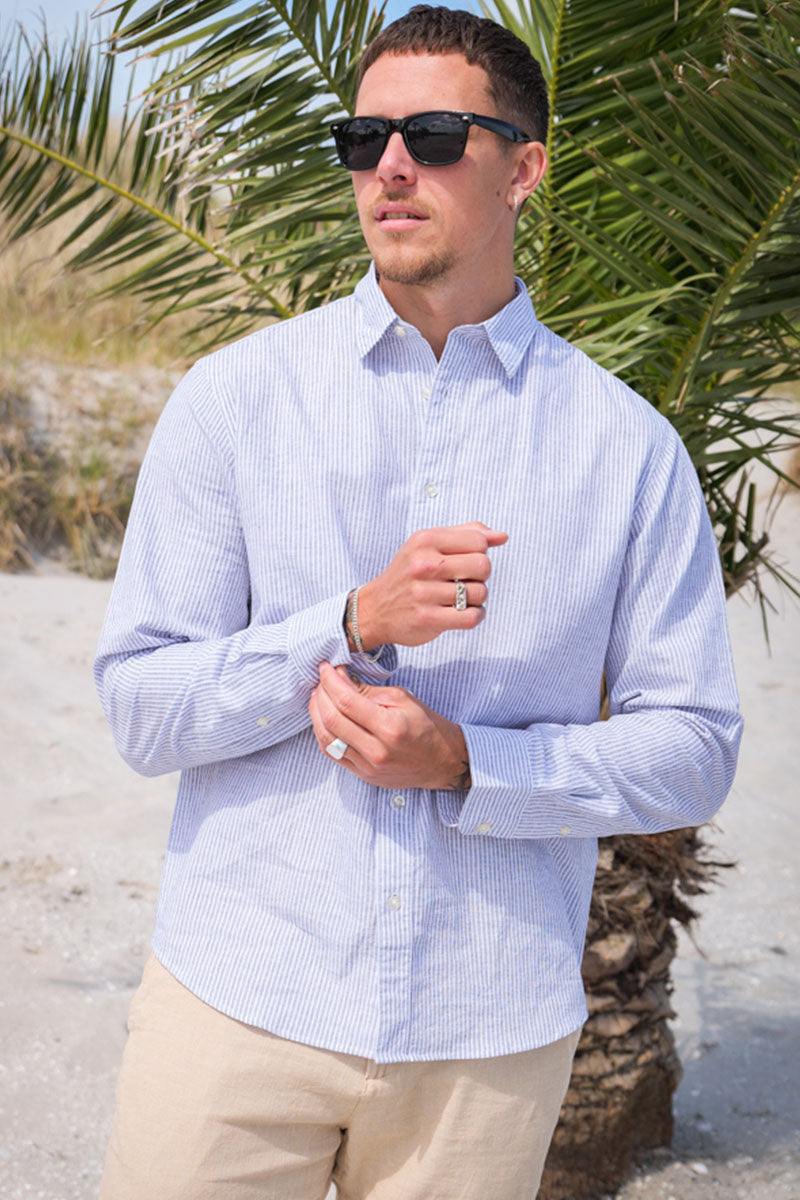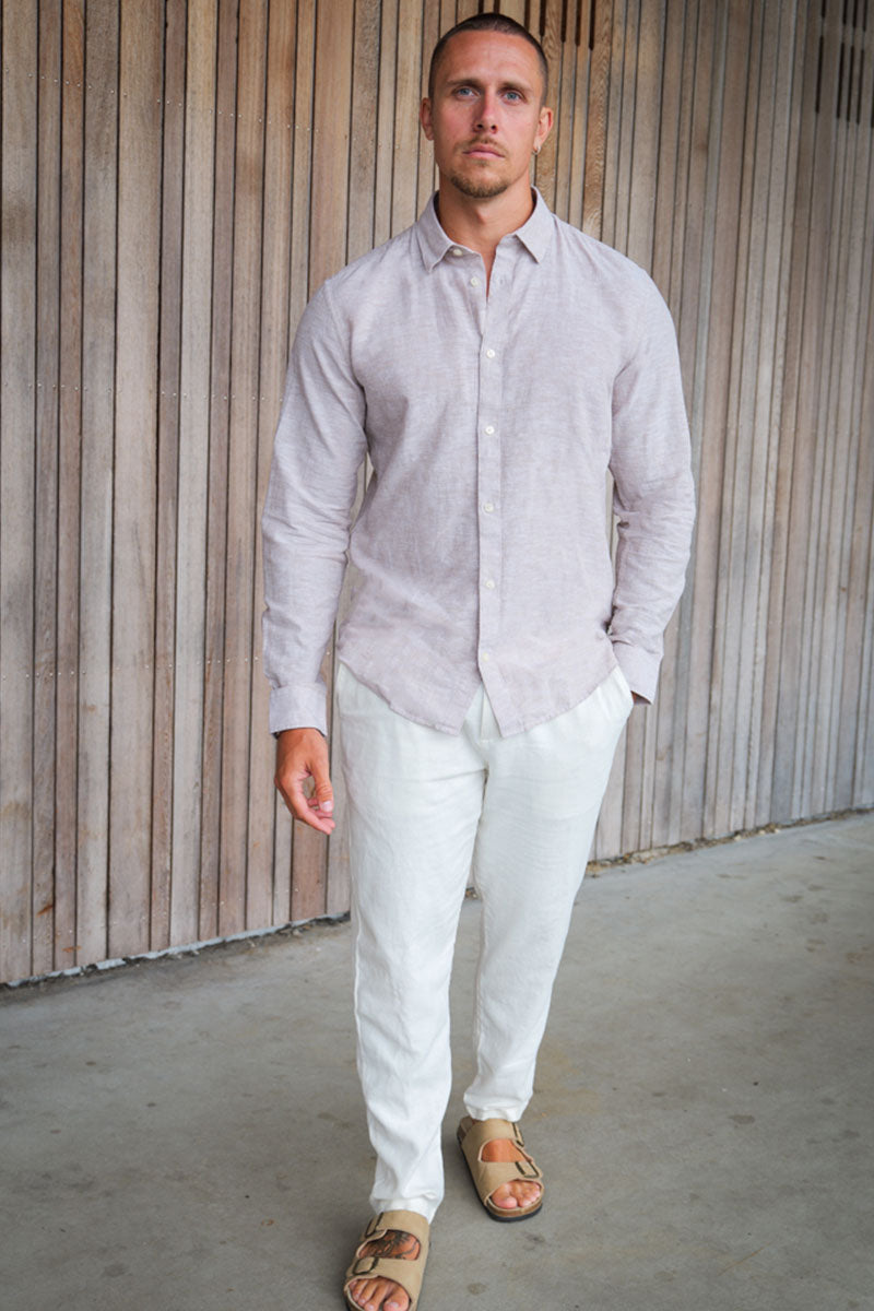 Wie bei den meisten anderen Kleidungsstücken lässt sich auch bei Leinen die Passform so anpassen, dass Sie genau den Look und Stil erreichen, den Sie wünschen. So wie bei T-Shirts ist es sehr beliebt geworden, vor allem kurzärmelige Leinenhemden in Übergröße zu wählen. Dies erhöht den Komfort der ohnehin schon sehr bequemen Hemden und verleiht ihnen außerdem einen urbaneren, trendigen Streetwear-Look. Natürlich können Sie sich auch für eine schlankere Passform entscheiden, wie Sie es bei normalen Baumwoll-Oberhemden tun würden. Kurz gesagt: auch Leinen-Bekleidung lässt sich wie jeder andere Stoff sowohl aufgepimpt als auch dezent tragen - je nach Anlass und gewünschtem Stil. Wenn Sie ein formelles Herren-Oberhemd für die Arbeit suchen, das für die heißen Sommermonate atmungsaktiver als gewöhnliche Oberhemden ist, probieren Sie eines unserer langärmeligen Leinenhemden. Wenn Sie in den Urlaub in den sonnigen Süden fahren und sich vor allem entspannen möchten, eignet sich möglicherweise ein kurzärmeliges Leinenhemd mit Muster. Das Gleiche gilt für Leinenhosen und Leinenshorts. Jedes dieser beiden Kleidungsstücke können Sie entweder schlicht mit einem Baumwoll-T-Shirt und einer Sonnenbrille kombinieren, oder Sie tragen ein Herren-Oberhemd dazu, vielleicht ebenfalls aus Leinen, für einen formelleren Look. Auch die Passform lässt sich an Ihre persönlichen Vorlieben anpassen.